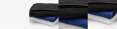 100% ringspun cotton. Terry towelling. Pocket with self colour zip closure (28 x 17cm). Bound edges. Tear out label.