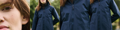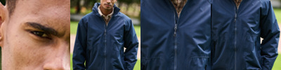 - Full length collar high zip with inner storm flap.