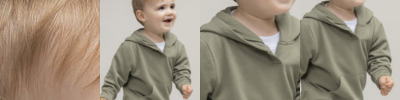 Kids’ hoodie made in recycled fabric with self-fabric knitted rib at hem and cuffs. Open placket at centre front. Tag-free.