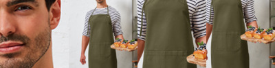 60% cotton/40% recycled polyester CVC. Easy care fabric.Heavyweight canvas material.Eyelet detail for adjustable knotted neckband.Double front pocket.Eyelets with rounded corners.Self fabric 90cm ties.Width 72cm.Length 86cm.Can be worn as a full bib or half waist apron.Domestic wash 40°C.