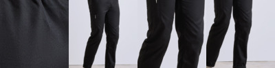 65% recycled polyester/35% cotton twill. Easy care fabric.Lightweight.Elasticated waistband with drawcord.Mock fly.Right thigh and rear pocket.Tapered lower leg with optional turn-up hems.Domestic wash 60°C.
