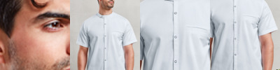 65% recycled polyester/35% cotton twill. Lightweight.Modern fit.Mandarin collar stand.Contrast neck tape.Press stud closure.Left sleeve pen pocket.Left chest pocket.Domestic wash 60°C.