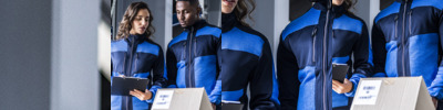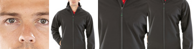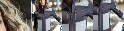 Two layer soft shell. Warm woven stretch soft shell fabric has a 96% polyester/4% elastane outer.Outer layer made from at least 50% recycled polyester.Grid effect brushed back polyester.Showerproof and windproof.Bound elasticated collar, cuffs and hem.Full length zip with chin guard and inner zip guard.Contrast panels.Two chest zip pockets.Two front pockets.Reflective print detail lower back.Cut out label.Access for decoration.