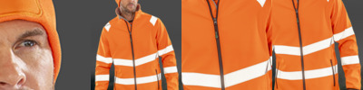 Two layer soft shell. Recycled polyester soft shell outer.Micro fleece inner layer.Conforms to EN ISO 20471: 2013 + A1: 2016 class 2.RIS-3279-TOM (orange only).Elastane-free, crimped yarn stretch easy to print fabric.Showerproof, windproof and breathable.Decorative top stitch.Hanging loop.Full length contrast zip with chin guard and inner zip guard.Two sewn on reflective bands around the body, sleeves and one on each shoulder.Two front zip pockets.Black elasticated bound cuffs.Tag free.Access for decoration.