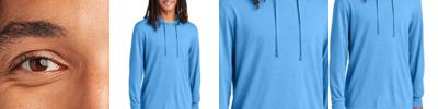 * Ventura Suede Knit 6.34-ounce * Solids, 89% recycled polyester/11% spandex * Heathers, 45% recycled polyester/44% polyester/11% spandex * Wicks moisture * Ladies' fit * Tag-free label * 3 panel crossover hood * Set-in sleeves with thumbholes for warmth * Self-fabric cuffs and bottom band * Side vents