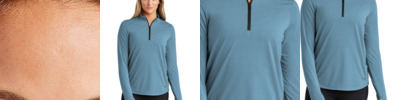 7.7-ounce, 89% recycled polyester/11% spandex interlock knit (solids) 7.7-ounce, 81% recycled polyester/8% polyester/11% spandex interlock knit (heathers) This product's carbon footprint has been measured and reduced through a combination of preferred materials and investing in carbon offset projects through the ClimeCo Certified Product Program Snag-resistant Moisture-wicking UPF rating of 50+ Forward shoulder Dyed-to-match, recycled, molded zipper with dyed-to-match rubber-tipped pull Angled front pockets with stitching detail Self-banded cuffs and hem Tag-free label