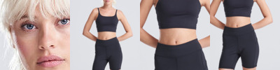Slim fit. Four-way stretch fabric. Two side pockets. Ergonomic fit. Made with recycled polyester. Tear-away label.