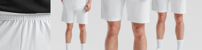 These sporty men’s sweatshorts are equipped with a comfortable elastic waistband, plus integrated drawstrings with extra-long cords, while side pockets complete the design. They have a regular fit and are about knee-length. Their pleasing cotton fabric is perfect for further refinements, including screen or flex printing.
