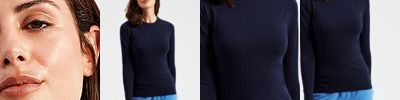 Women’s long sleeve underscrub baselayer. Comfortable four-way stretch. Breathable, easycare, crease-resistant fabric. Deodorising properties. Crew neck, raglan stitched sleeves. Seamless body with jacquard pattern. Decorate with embroidery and/or print. Contains certified recycled nylon.