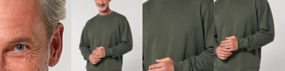100% Organic carded cotton loose knit single Jersey. The iconic unisex crew neck sweatshirt. Modern medium fit. 1x1 rib at neck collar, sleeve cuff and bottom hem. Self-fabric half-moon at back neck. Inside herringbone back neck tape. Twin-needle topstitch centred on seam at hem, cuff and armhole.