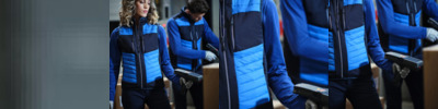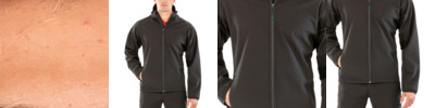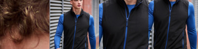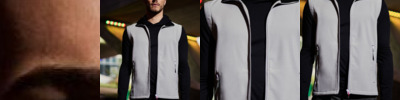Fabric Information Warm backed woven stretch Softshell fabric Wind & Water Repellent Fabric Special Features Stretch binding to armholes, hem and collar 2 zipped lower & 2 zipped chest pockets, with inner zip guard Made using recycled materials