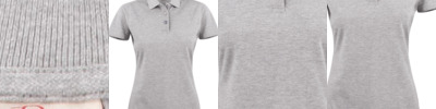 - Shaped ladies piqué shirt with side vents, flat knit collar and three buttons at front placket.
