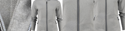 - Contrasting zippers and decorative flatlock seam on sleeve