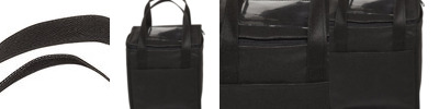 - Features top zipper closure, black carry handles and and black front open pocket (approx 11w x 7h at widest points)