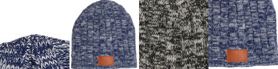 - Heathered Acrylic blend knit beanie with PU faux leather patch