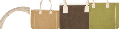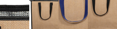 - Reusable tote bag made of Laminated Jute with 10 oz. Cotton Canvas piping.