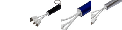 - Duo USB charging cable key chain adapter with light inside main body that illuminates the logo while in use
