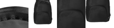 400D x 400D recycled RPET ballistic poly PU/600D ballistic poly 200D recycled RPET poly debossed lining Large main compartment with interior mesh pockets Dedicated laptop compartment Interior mesh gear pockets and headphone storage Interior office Vertical zippered front pocket Zippered front bottom pocket Expandable side pockets Luggage trolley pass through on back Padded top and side grab handles Padded air mesh shoulder straps with webbing and stash pocket Raised O icon heat transfer on front Laptop sleeve dimensions: 18.5'h x 12'w; fits most 18' laptops Dimensions: 19'h x 12'w x 8'd Capacity: 1,220.5 cu. in./20 L Weight: 2.6 lbs./1.2 kg Note: Bags not intended for use by children 12 and under.