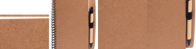 - Recycled Cardboard cover made from 65% recycled materials (part is pre-consumer and part is post-consumer); 50 ruled recycled sheets are made from 20% pre-consumer recycled material