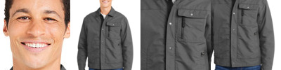 - 8 oz. canvas, 60% cotton, 40% nylon, washed and peached for softness