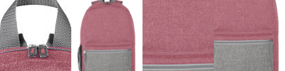 Large front zippered pocket; two self-fabric side bottle pockets
