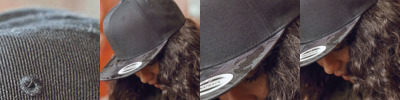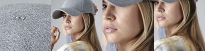 Soft buckram. Detailed camo print with washed treatment. Matching camo-print undervisor.