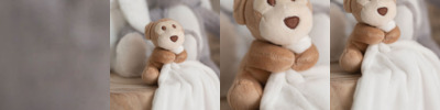 Baby monkey comforter with double fabric blanket. Zip access for embroidery. Monkey with soft filling. 33 x 33 cm blanket. Complies with EN71 European Toy Safety regulations. Remove all hang tags and their fasteners before giving these items to a child. Suitable for children of all ages.