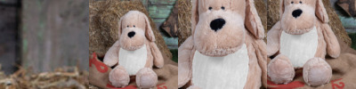 Mid Brown coloured soft plush dog. Floppy ears. Sewn eyes. Contrast brown nose. Light Brown coloured panel on chest and feet. Zip details on the base of the dog for direct access onto the tummy for embroidery. Removable inner stuffing. Complies with EN71 European Toy Safety regulations. Remove all hang tags and their fasteners before giving these items to a child. Suitable for children of all ages.