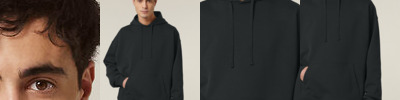 Set-in sleeve. Double-layered hood in self-fabric. Flat drawcords in matching body colour. Embroidered eyelets. Double-needle topstitch on all seams. 2x1 ribs at sleeve cuffs and bottom hem. Kangaroo pocket at front. Inside herringbone back neck tape. Self-fabric half moon at back neck.