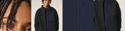 Set-in sleeves. Elastic recycled binding at cuffs and hem. Inside back neck recycled binding loop and back neck tape. Plastic Vislon zip with metal zip pull and cord ends. Fully bonded inside polar fleece layer and anti-pilling finish. Front side contrast softshell welt pockets with hidden zip closure. Contrast softshell fabric at pocket, back yoke and outer collar band. Inside invisible zip at the wearer’s left chest for easy decoration.