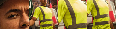 50% recycled polyester/50% polyester. Conforms to EN ISO 20471: 2013 + A1: 2016 class 2.RIS-3279-TOM (orange only).Soft touch, wicking micro mesh.UPF 40+ protection.Contrast ribbed collar.Taped neck.Two reflective bands on front, back and one over each shoulder.Side vents.Drop tail.Twin needle sleeves and hem.Branded tab on lower left side seam.