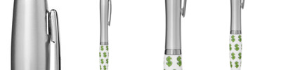- Retractable curvy plastic barrel ballpoint pen with financial theme stock art grip