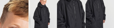 Unisex. Oversized. Full-length two-way plastic zip with easy pull toggles. Chin guard. Oversized fit. Side vents. Adjustable cuffs with hook and loop fastening. Side zip pockets. Inside pocket with zip on the left side. Inside patch pocket on the right side. 3-panelled hood. Loop on the centre back of the jacket for hanging the robe. Dropped back hemline. (5000/5000 waterproof and windproof). Embroidery access to the back and chest area can be accessed through here. Waterproof taped seamed outer layer. Sherpa fleece interior. Rebrandable stuff sack carry bag with double drawstring straps. CE Class 1 Certified.